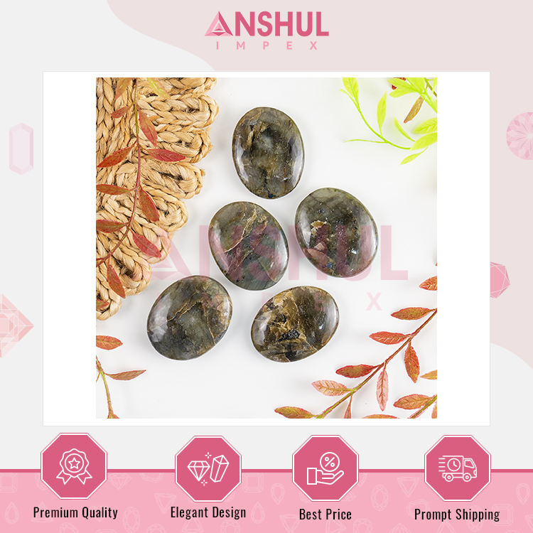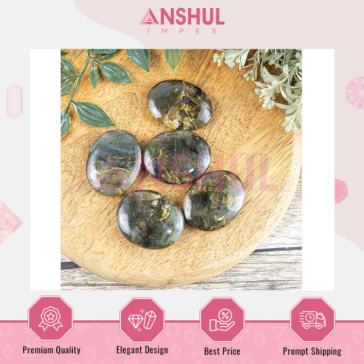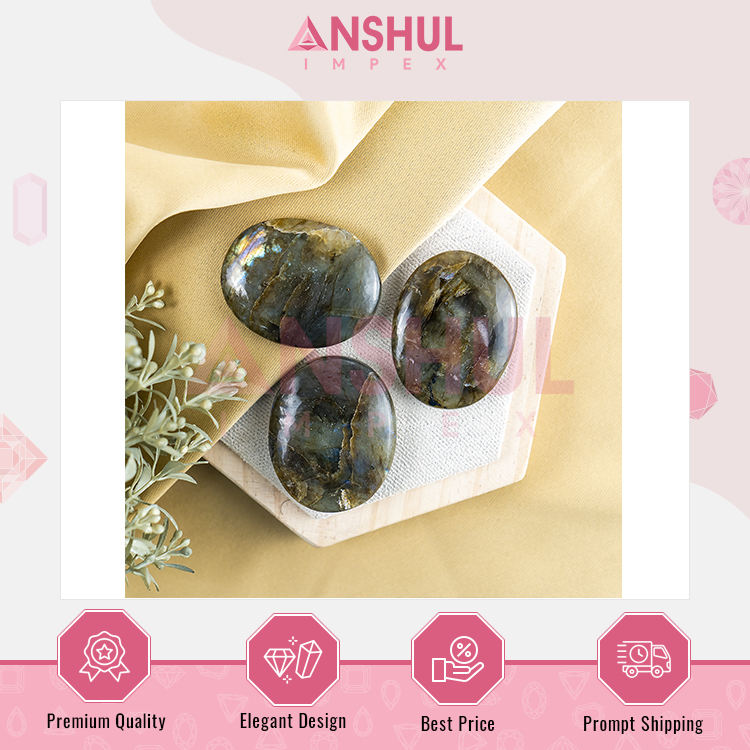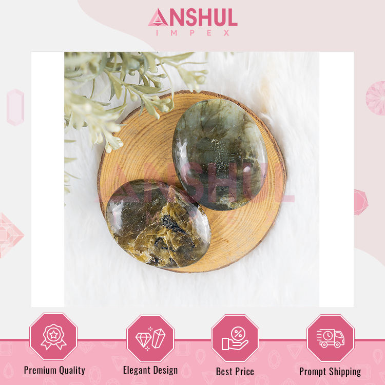 หินลาบราดอไรต์ธรรมชาติทรงรีขัดเงาขนาด 2.5 นิ้ว น้ำหนัก 1 กิโลกรัม สำหรับการปกป้องและปรับสมดุลพลังงาน จากอินเดีย Anshul Impex