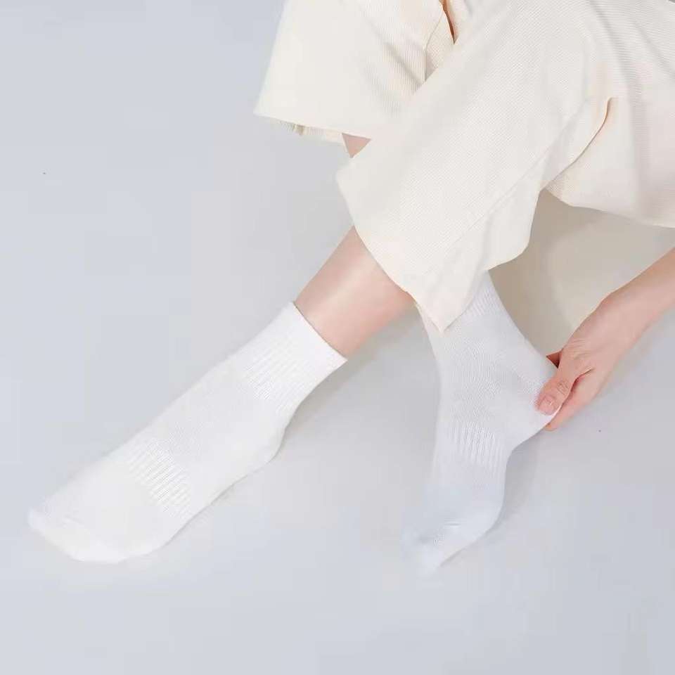 ถุงเท้ายาวผ้าฝ้ายเนื้อเรียบ | ถุงเท้าผ้ายืดระบายอากาศได้ดีรองเท้าอเนกประสงค์ออกแบบได้ตามต้องการสำหรับการใช้งานในสำนักงานแบบลำลอง