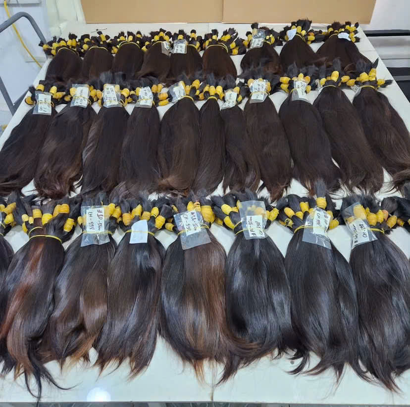ผมธรรมชาติเรียบเนียนสำหรับวัตถุดิบต่อผม ผมแท้เวียดนาม 60 ซม. 1 กก. สามารถฟอกสีเป็นสีบลอนด์ได้