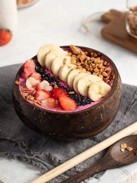 ชามกะลามะพร้าวสมูทตี้ | กะลามะพร้าวธรรมชาติคุณภาพสูงพร้อมช้อน | ชุดชามกะลามะพร้าวสำหรับสมูทตี้ฤดูร้อน