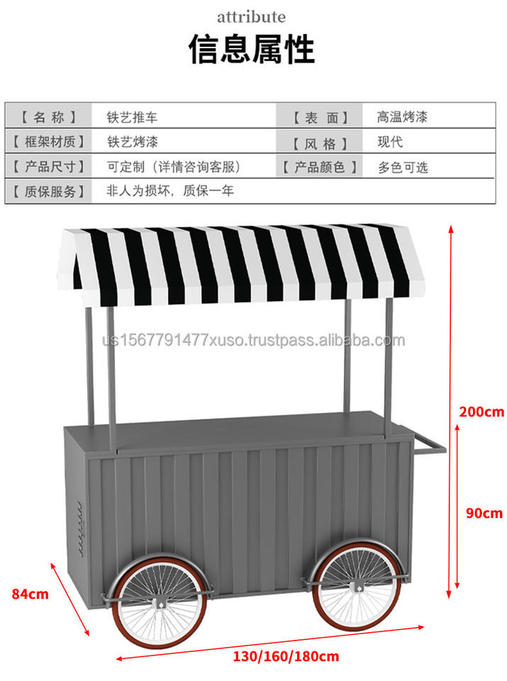 รถเข็นขายอาหารข้าวโพดแบบพกพาใช้และใหม่สำหรับขนมขบเคี้ยวผลิตภัณฑ์สตรีทฟู้ดทำจากนมไอศกรีมบาร์บีคิว