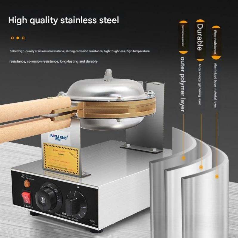 เครื่องทำขนมวาฟเฟิลกรวยลายสก็อตแบบไฟฟ้า พร้อมระบบควบคุมเชิงพาณิชย์ เคลือบสารกันติด