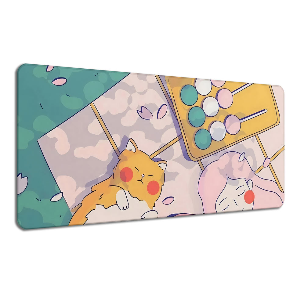 Nack Time Neko blotter-Kawaii core พื้นผิวการเล่นเกมที่แสนสบาย Kawaii แผ่นรอง80x30cm โต๊ะ