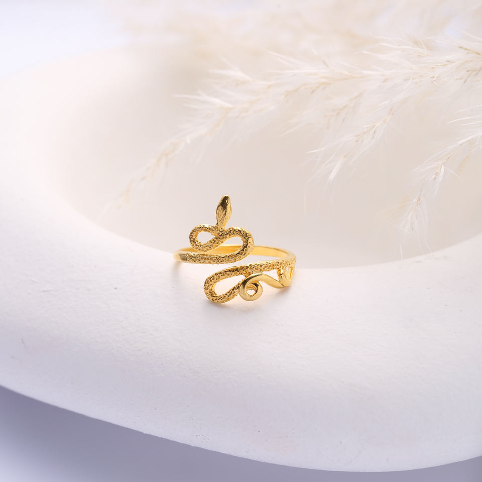 แหวนงูปรับได้รูปแบบเรียบเครื่องประดับทองสำหรับผู้หญิงตัวเรือนสีเงิน925ทันสมัย