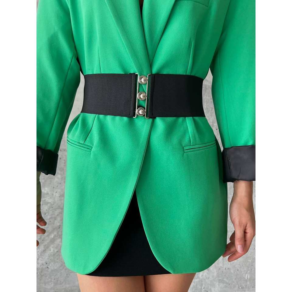 เข็มขัดรัดเอวแบบยืดหยุ่นสำหรับผู้หญิง แฟชั่นผ้าสแปนเด็กซ์โพลีเอสเตอร์ รัดหน้าท้อง สไตล์สี่ฤดู