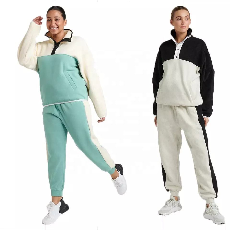 ชุดวอร์มและกางเกงวิ่ง2ชิ้นสำหรับผู้หญิง,ชุดวอร์มสีสวมใส่สบายมีกระดุมแบบ Snap ปี2022
