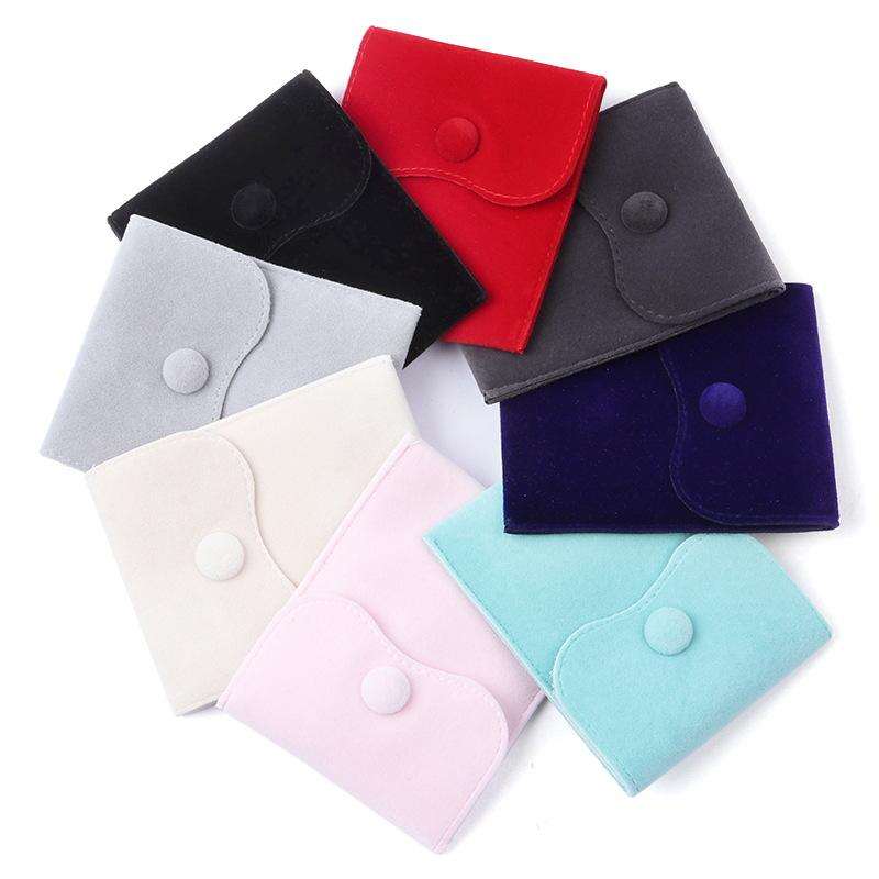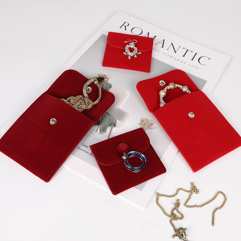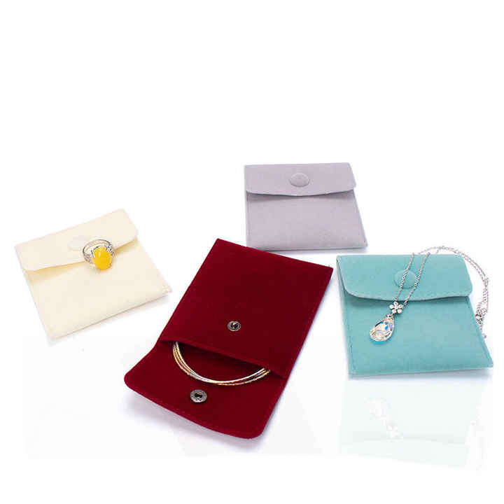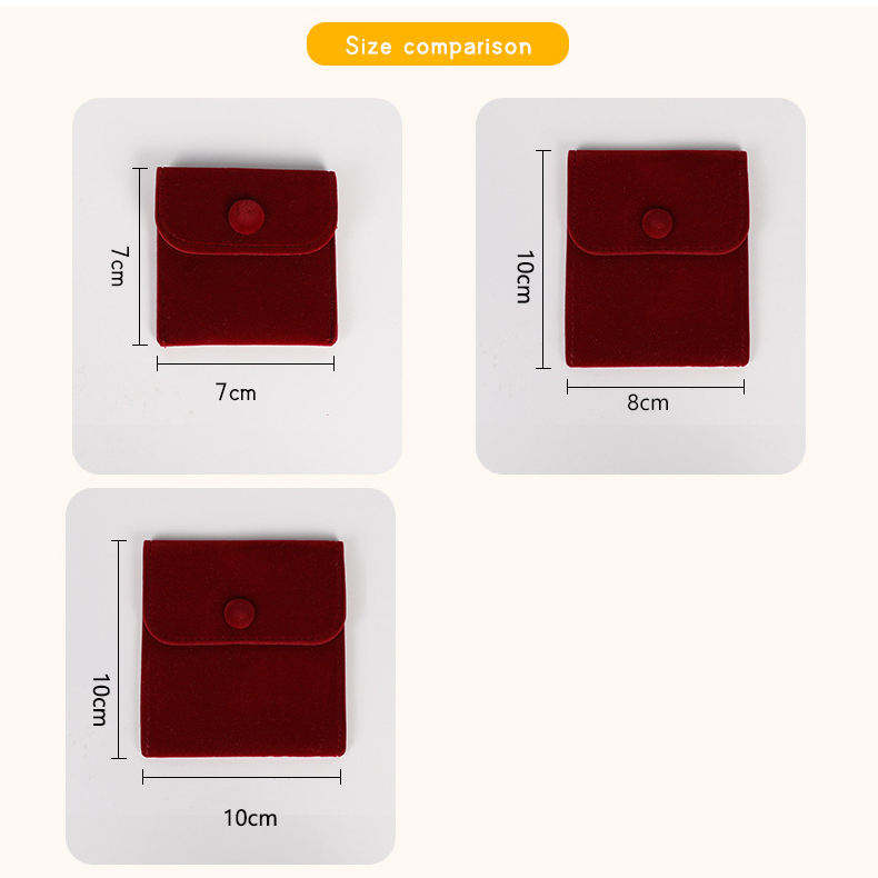 กระเป๋าใส่เครื่องประดับกำมะหยี่นุ่มทรงสี่เหลี่ยมผืนผ้าแบบกระดุมแป๊ก สำหรับเก็บสร้อยข้อมือ สร้อยคอ แหวน - ถุงบรรจุภัณฑ์อเนกประสงค์