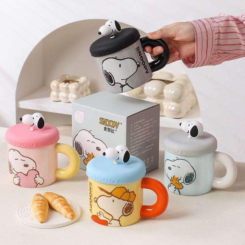 แก้วเซรามิคสนูปปี้พร้อมฝาปิด ปลอดสาร BPA ของขวัญสำหรับเด็กผู้หญิง ใช้ในออฟฟิศหรือที่บ้าน
