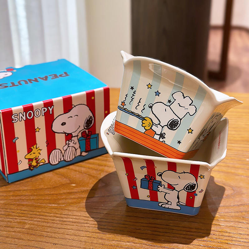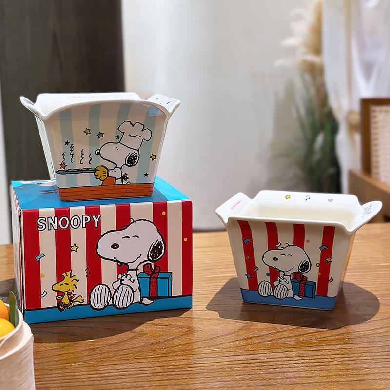 ชามเซรามิคสโนปปี้ 350 มล. ฝาปิดแบบพลิกได้ ลายการ์ตูน ชามขนมสำหรับงานปาร์ตี้ ใช้กับไมโครเวฟได้