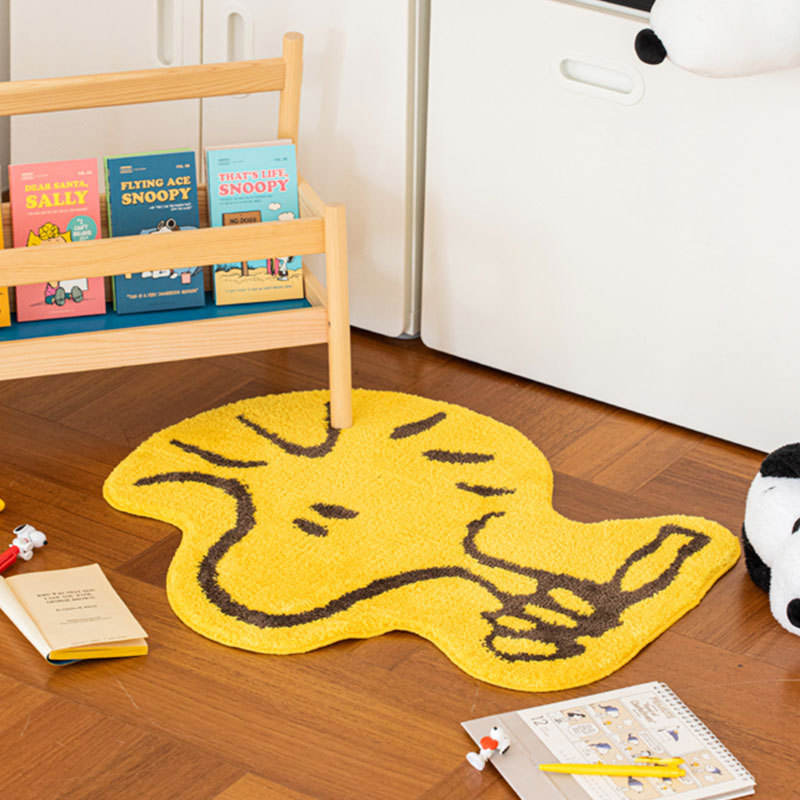 พรมปูพื้นสีเหลืองลายการ์ตูนสนูปปี้ พรมในร่มแบบซักด้วยเครื่องได้สำหรับห้องนอนห้องน้ำ