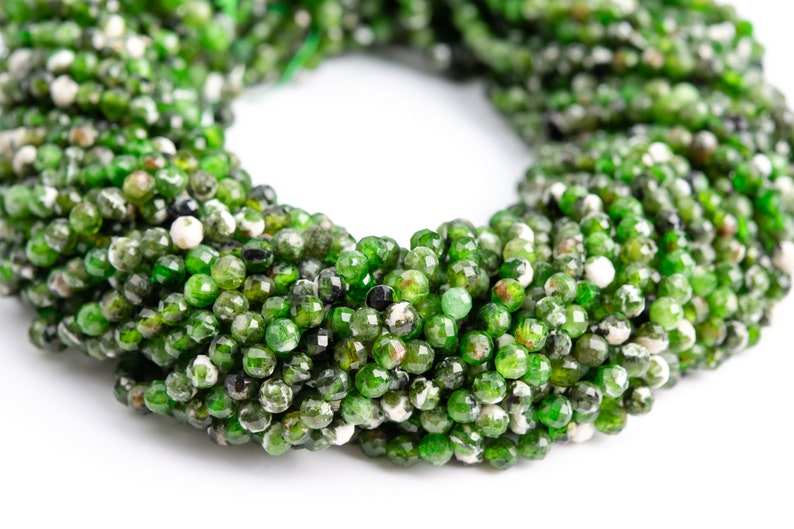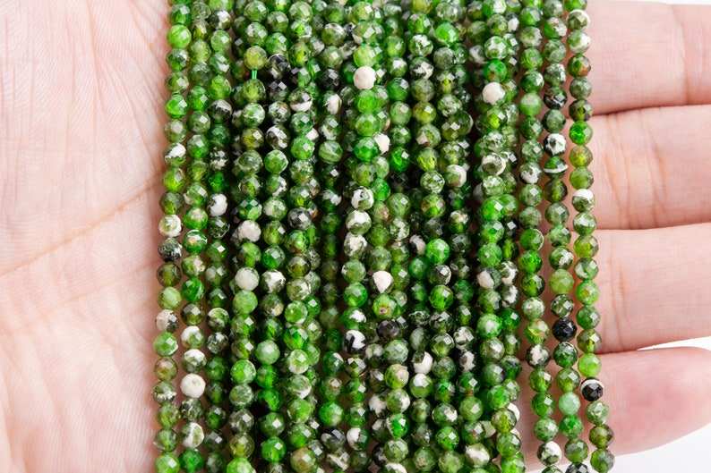 ลูกปัดโครเมียมไดโอไซด์เคลือบหิมะ ของแท้จากรัสเซีย พลอยธรรมชาติทรงกลมเหลี่ยมเพชรพลอย สำหรับทำเครื่องประดับ