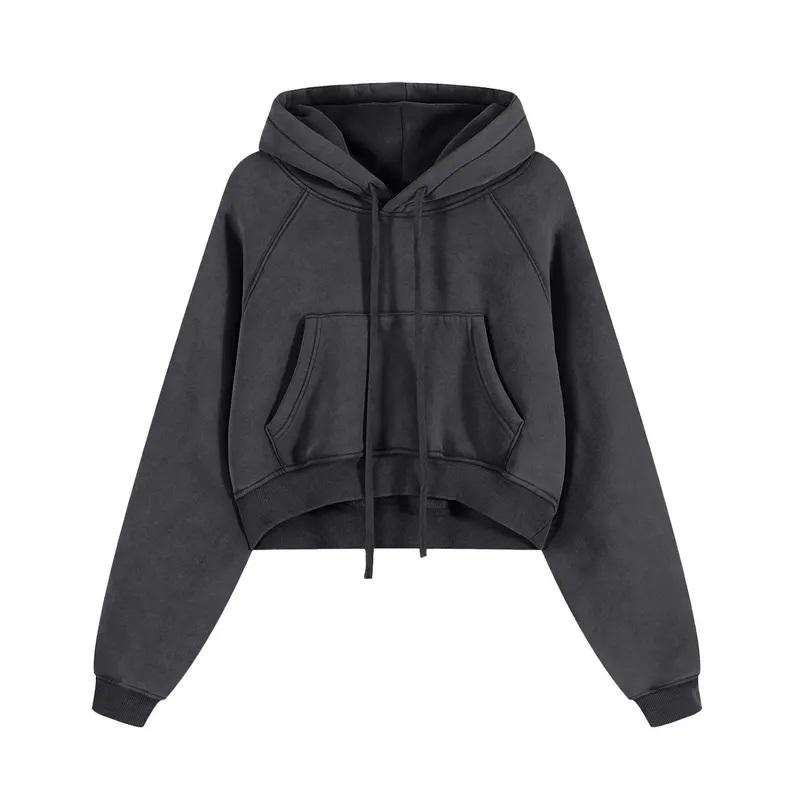 เสื้อฮู้ดครอปแบบสโนว์วอช - ผลิตตามแบบ ODM พร้อมโลโก้ด้านหน้า ผ้าฝ้ายฟลีซ 100% สำหรับฤดูหนาว