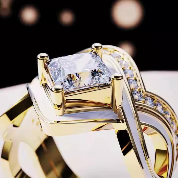 ชุดแหวนเพชรรูปคลื่นหิมะสีทอง18K แหวนเวอร์เมลสีทองแบบมินิมอลสำหรับผู้หญิงแหวนหมั้นเพชรที่โตในแล็บสำหรับผู้หญิง