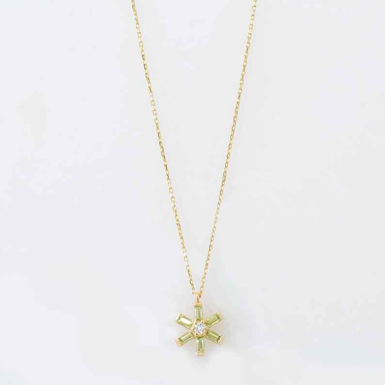 จี้หินเพอริดอทสีเขียวรูปเกล็ดหิมะ ดีไซน์มินิมอล เงินแท้ 925 ชุบทอง 14K ของขวัญ