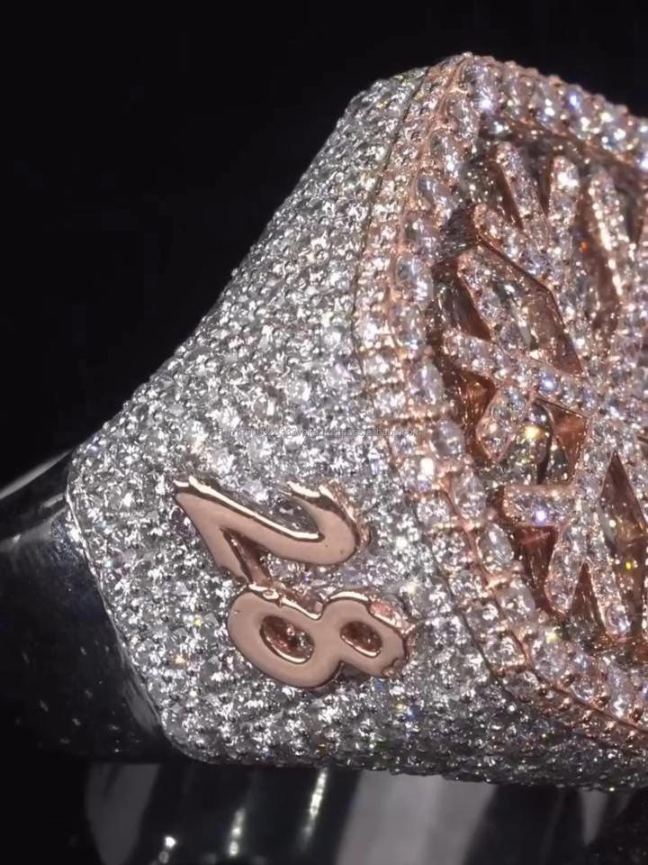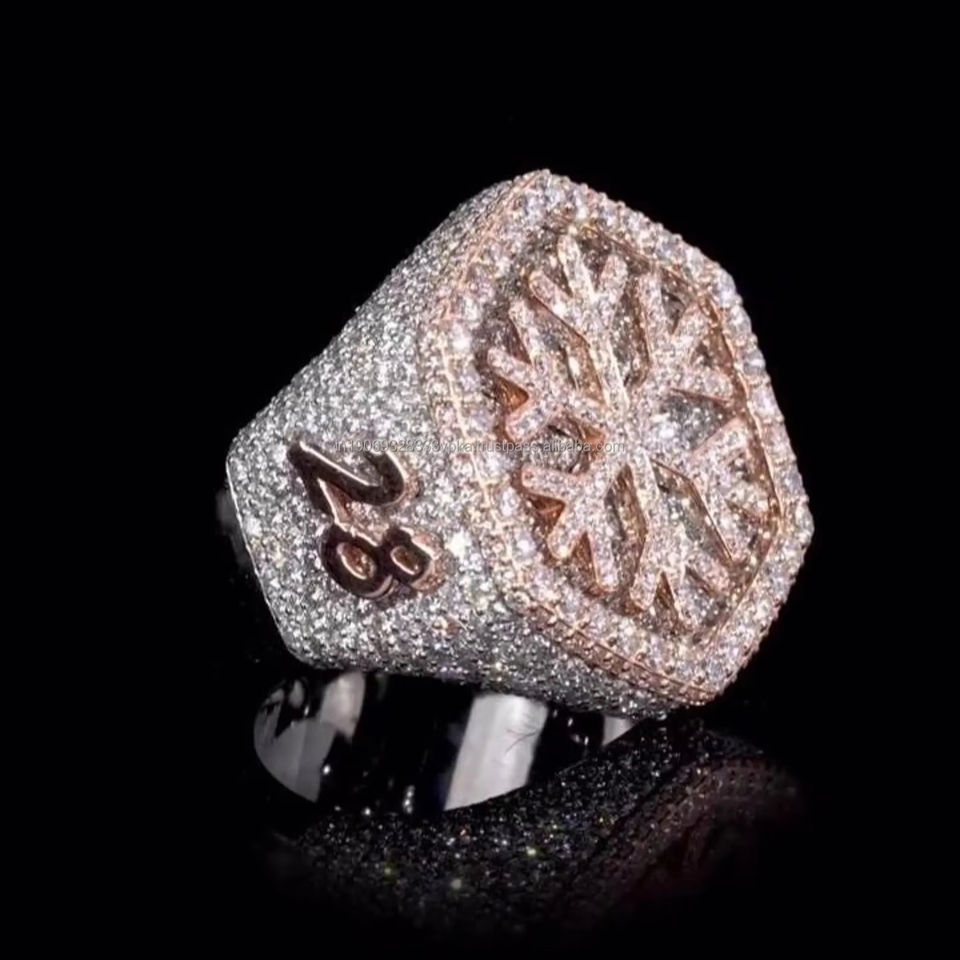 แหวนเพชรโมอิสซาไนต์ทรงเกล็ดหิมะ ประดับเพชรฮิปฮอป เงินแท้ 925 ชุบโรสโกลด์ โรเดียม แหวนผู้ชาย สไตล์บลิงค์