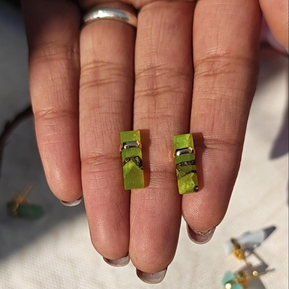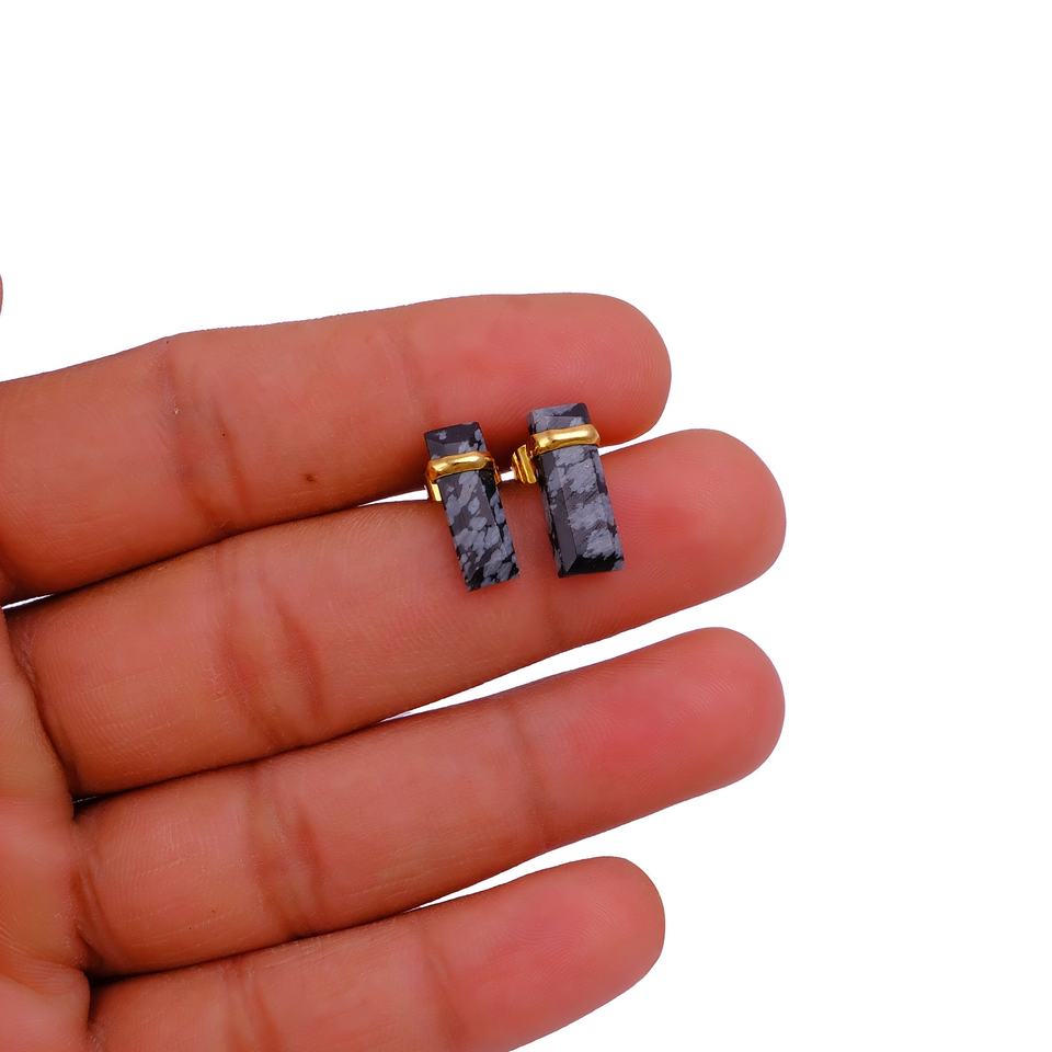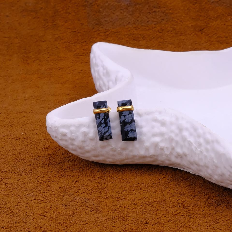 ต่างหูแบบติดหูทรงสี่เหลี่ยมผืนผ้าทำจากหินออบซิเดียนลายเกล็ดหิมะ ชุบทองคำสีกุหลาบ งานแฮนด์เมด เครื่องประดับทองเหลืองสำหรับผู้หญิง ทันสมัย
