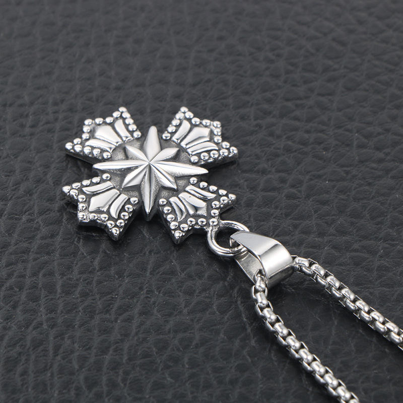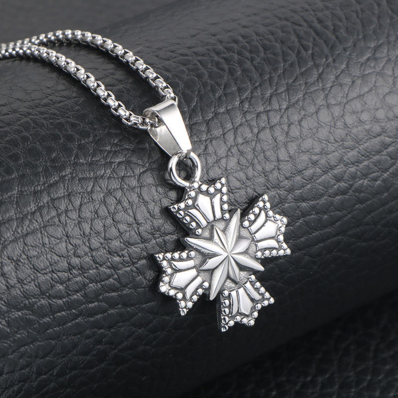 Snowflake Six Pointed Star Necklace Pendant Titanium Steel Men Women Sweater Chain Accessory Gift SP809