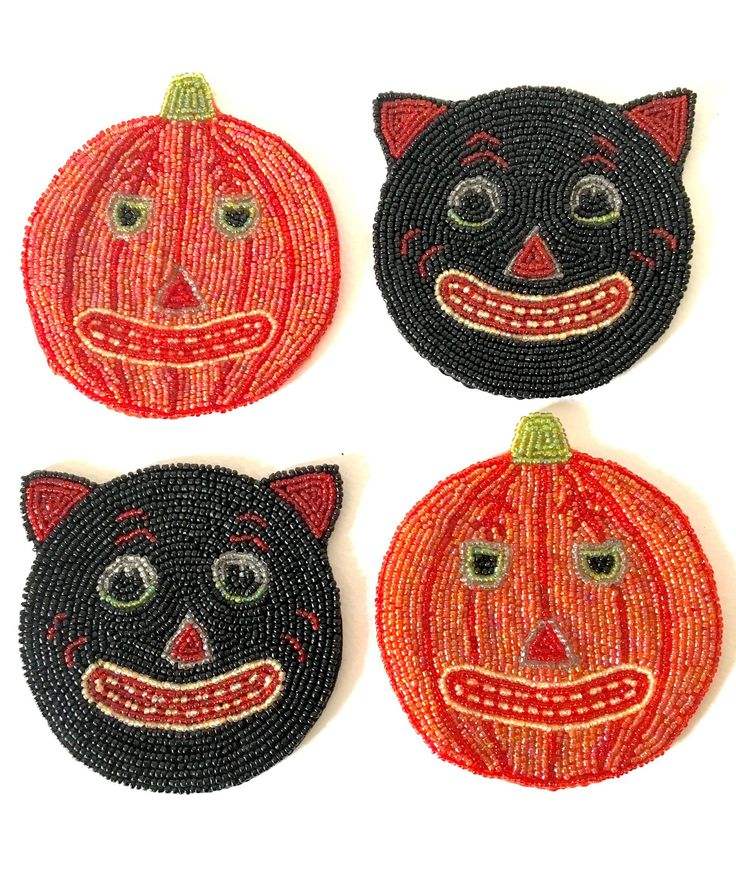 ถาดรองแก้วลูกปัดปักลายตุ๊กตาหิมะ4ชุดดีไซน์แฟนซีสูทน่ารักสวยงามทันสมัย