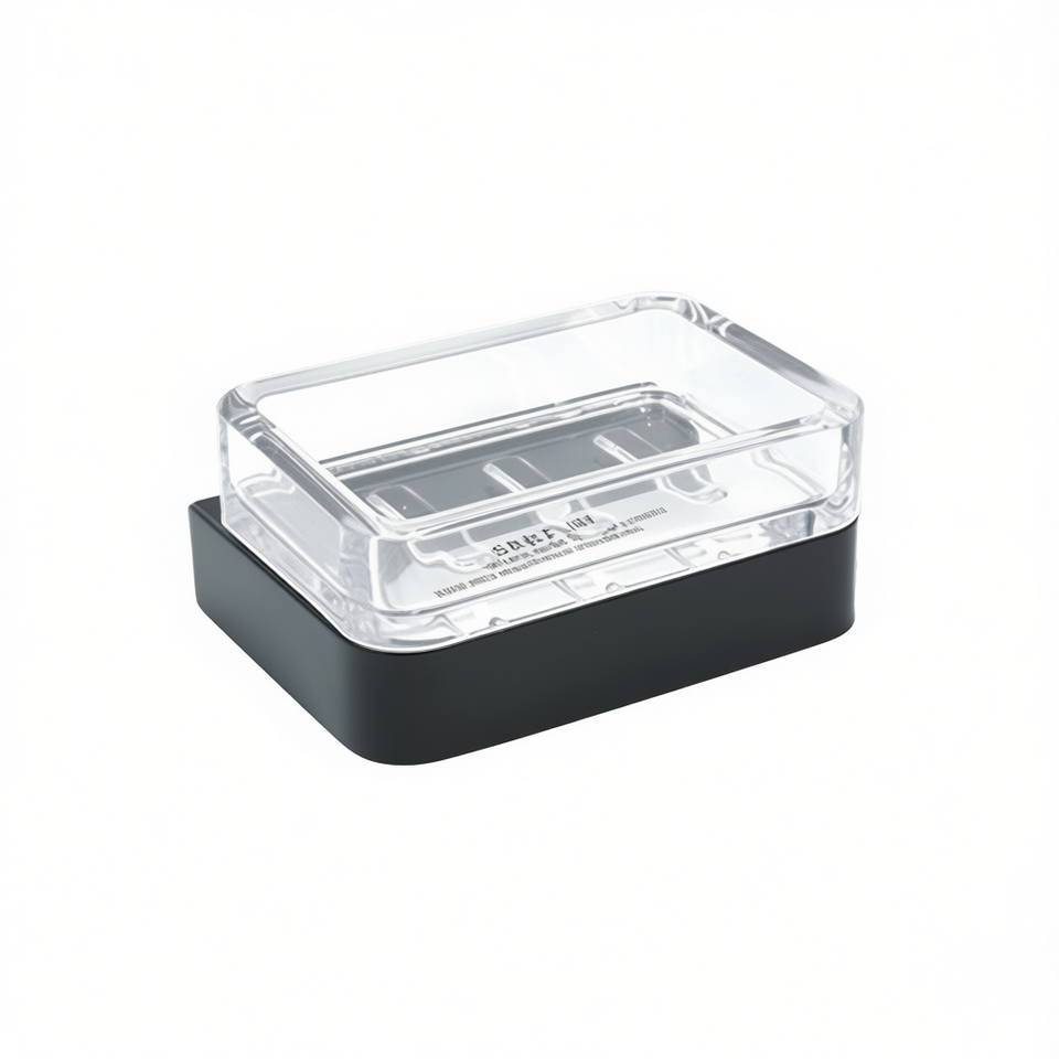 จานวางสบู่ รุ่น 25 สีดำ 12.5 X 5 X 10.2 ซม. พร้อมฝาใสสำหรับใช้ในห้องน้ำ