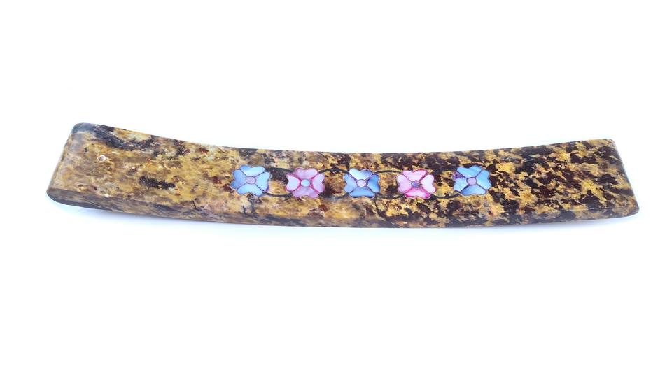 แท่นวางธูปหินสบู่รูปทรงกอนโดลาแบนพร้อมดอกไม้สีสันสดใส