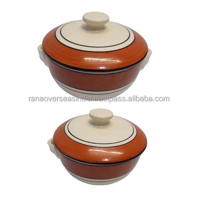 หม้อเซรามิคทรงกลมพร้อมฝาและหูจับ ขนาดเส้นผ่านศูนย์กลาง 24 ซม. ทำด้วยมือ เป็นมิตรกับสิ่งแวดล้อม สำหรับใช้ในบ้านและโรงแรม