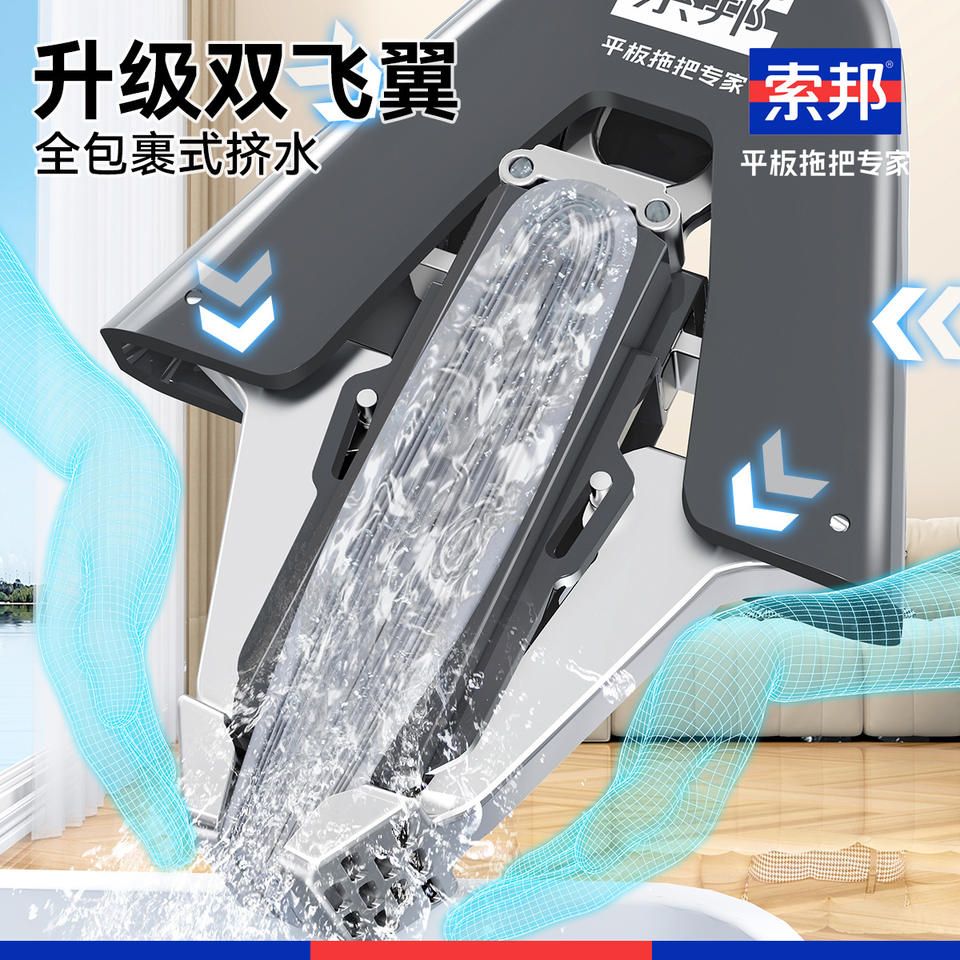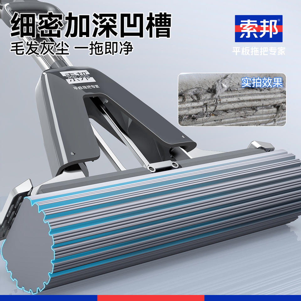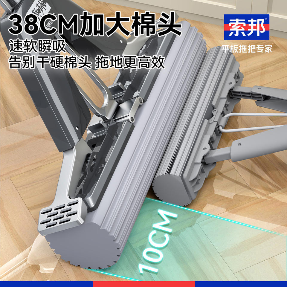 ไม้ถูพื้นไม้อัดโซบัม PVA รูปทรงสี่เหลี่ยม 0.6 กก. บิดน้ำได้ด้วยปุ่มเดียว สำหรับใช้ในบ้าน