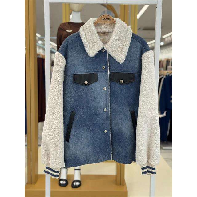 เสื้อแจ็คเก็ตเดนิมโซเบพร้อมปกและแขนเสื้อขนเทียม เสื้อโค้ทกันลมสำหรับผู้หญิง หลากสี