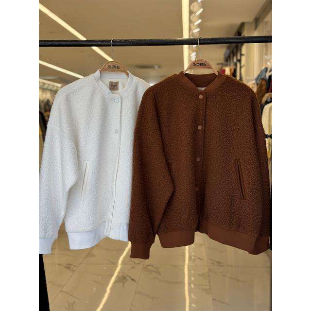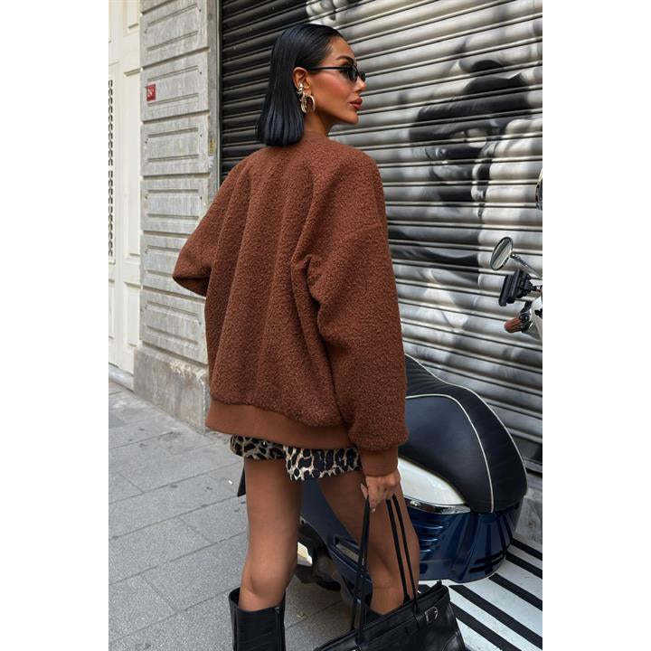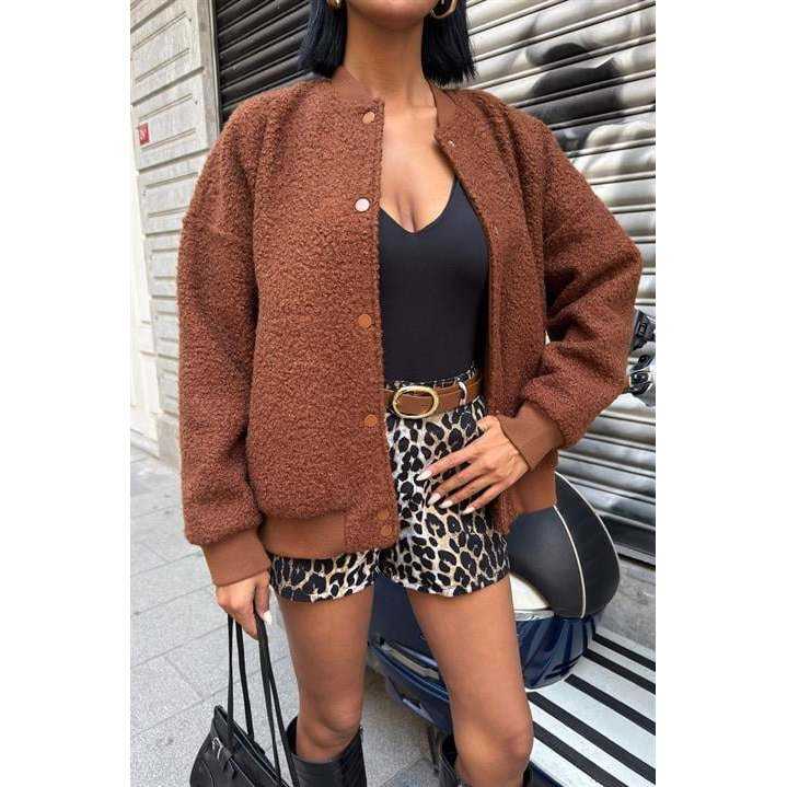 เสื้อแจ็คเก็ตโซเบ้ ฟลีซ บอมเบอร์สำหรับผู้หญิง สีน้ำตาล ผ้าโพลีเอสเตอร์บุใยสังเคราะห์ แขนยาว เสื้อคลุมกันหนาวสำหรับฤดูหนาว