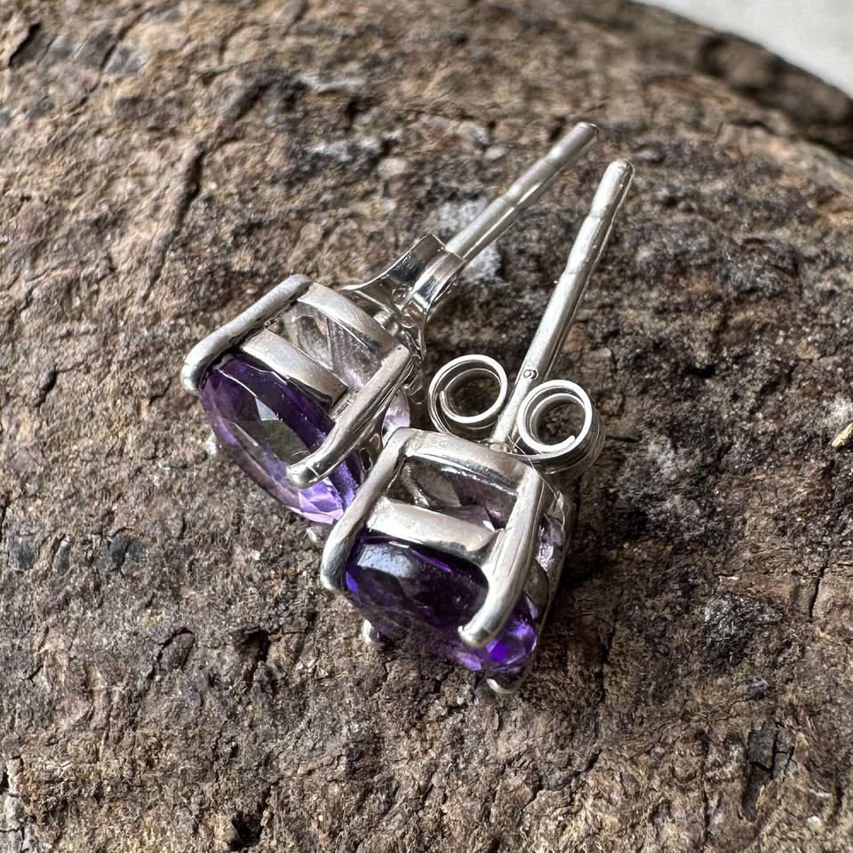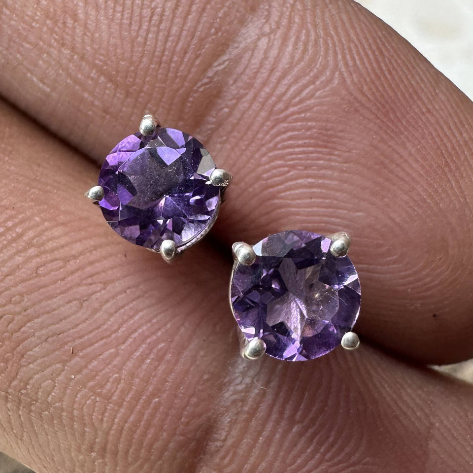 ต่างหูเงินแท้ 925 ดีไซน์เรียบหรู ประดับพลอยอะมีทิสต์ทรงเหลี่ยม งานแฮนด์เมดจาก Sobiz Designs น้ำหนัก 1.20 กรัม เหมาะสำหรับเป็นของขวัญในงานปาร์ตี้
