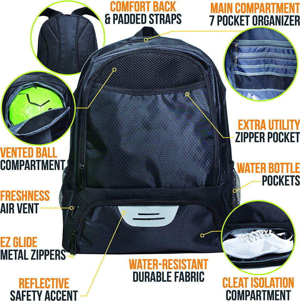 กระเป๋าฟุตบอลพร้อมที่ใส่ลูกฟุตบอล กระเป๋าเป้สะพายหลังฟุตบอลพร้อมช่องใส่รองเท้า
