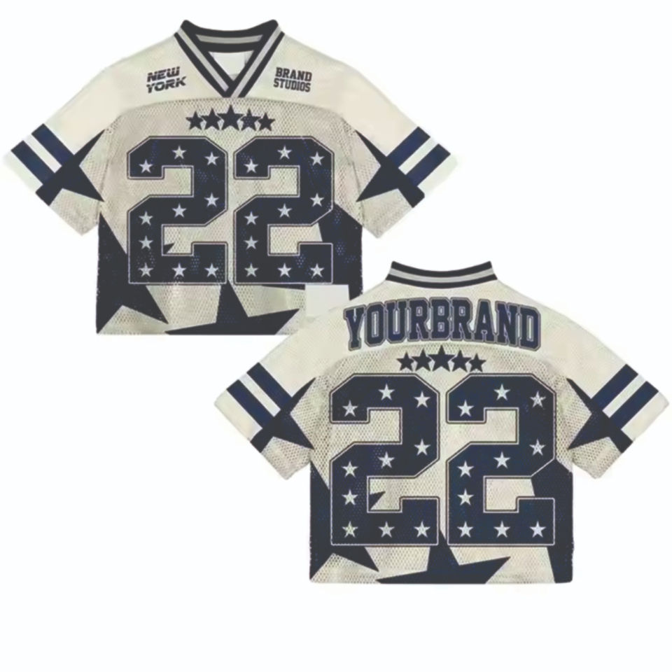 เสื้อฟุตบอลสำหรับผู้ชายระบายอากาศน้ำหนักเบา100% ผ้าโพลีเอสเตอร์สตรีทตาข่ายสำหรับแฟนบอลออกแบบโลโก้ได้ตามต้องการ