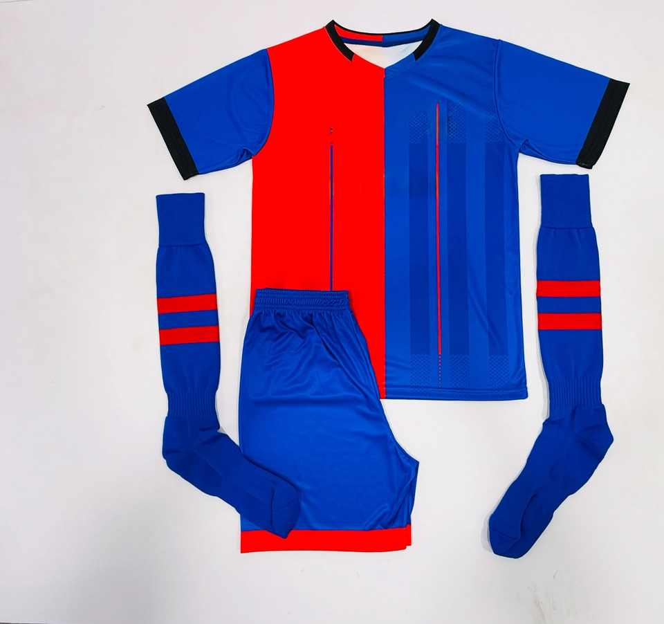 ชุดกีฬาฟุตบอล ชุดเสื้อผ้ากีฬาแห้งเร็ว ระบายอากาศได้ดี ผลิตจากโพลีเอสเตอร์ เสื้อเจอร์ซีย์ กางเกงขาสั้น ชุดฝึกซ้อมฟุตบอล รับสกรีนโลโก้ ชุดทีมฟุตบอล รับผลิตแบบ OEM ODM