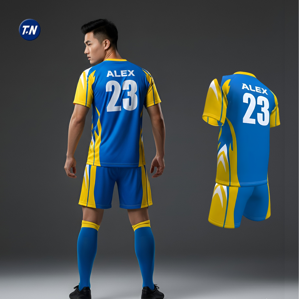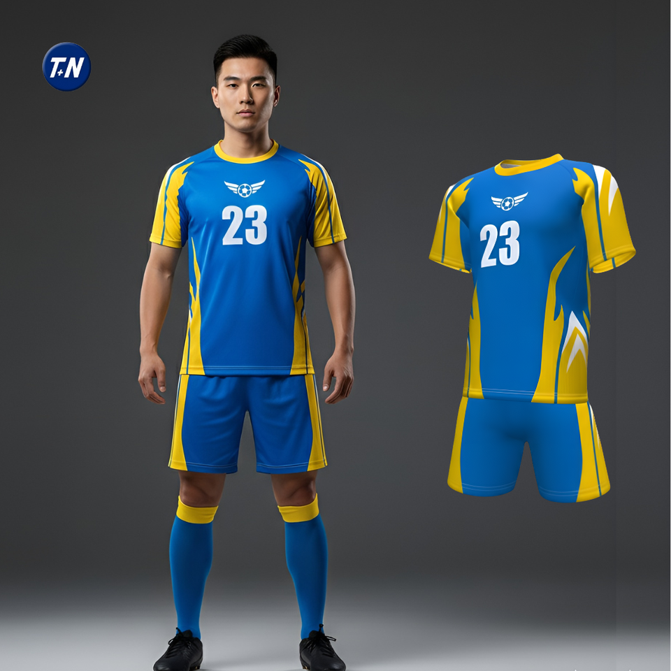 ชุดฟุตบอล โพลีเอสเตอร์ 100% แห้งเร็ว ระบายอากาศดี พิมพ์ลายแบบซับลิเมชั่น คอวี ยูนิเซ็กส์ เสื้อฟุตบอลประสิทธิภาพสูง