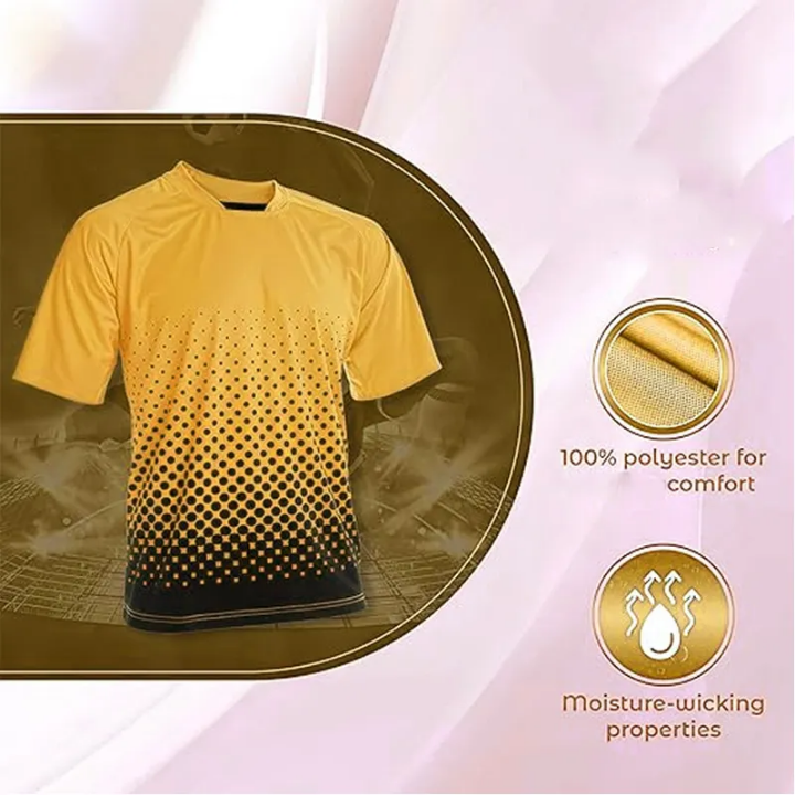 ชุดฟุตบอลสีเหลือง แดง ดำ เสื้อฟุตบอลสีเขียว ดำ และทอง เสื้อฟุตบอล