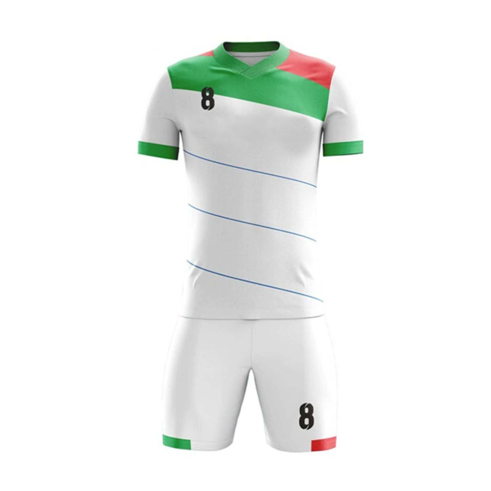 ชุดฟุตบอลคุณภาพสูง ผลิตจากโพลีเอสเตอร์ 100% ระบายอากาศได้ดี น้ำหนักเบา แขนสั้น พร้อมบริการสกรีนแบบรีดร้อนตามสั่ง