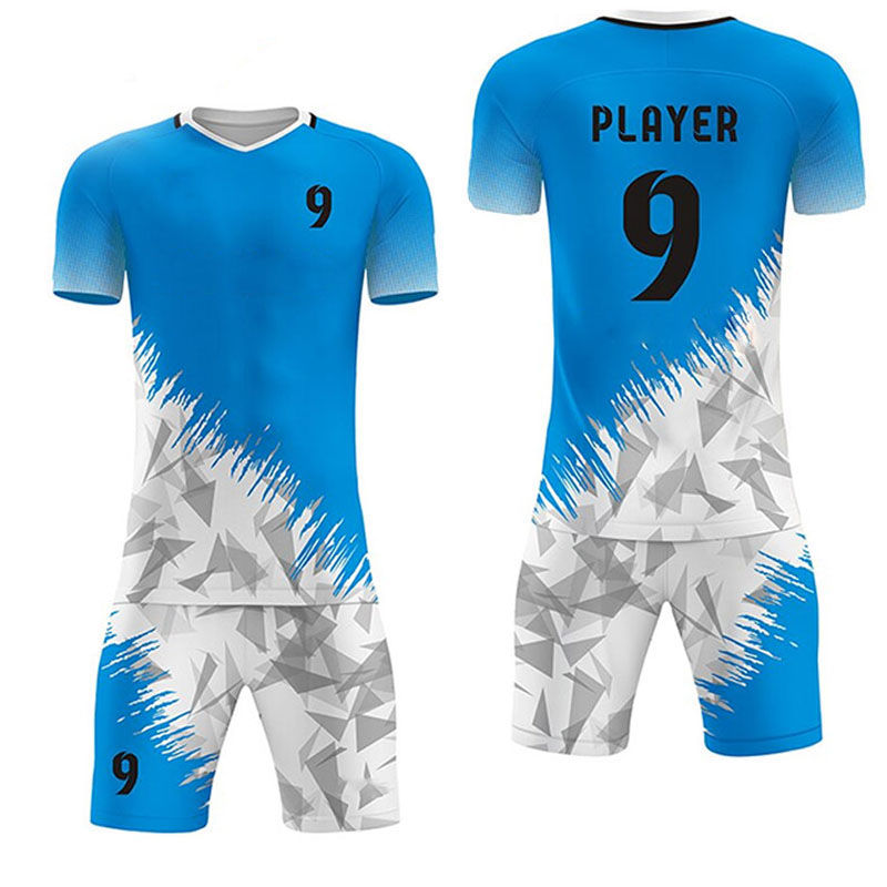ชุดฟุตบอลแห้งเร็ว ระบายอากาศดี แขนสั้น เป็นมิตรกับสิ่งแวดล้อม แบบซับลิเมชั่น ขายส่ง
