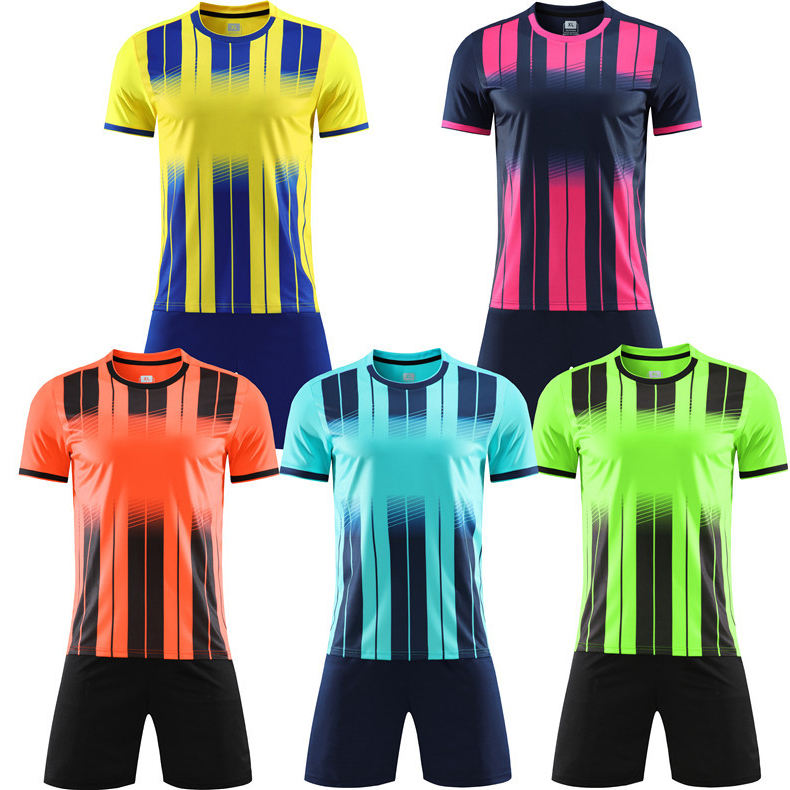 ชุดนักบอลผ้าเจอร์ซีย์แห้งเร็ว100% ชุดเล่นฟุตบอลผ้าโพลีเอสเตอร์ออกแบบโลโก้ได้ตามต้องการสำหรับผู้ชายและผู้หญิง