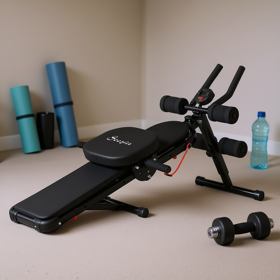 โซซินม้านั่งออกกำลังกายแบบพับได้พร้อมเครื่องบริหารหน้าท้องโครงเหล็กอัลลอยด์วัสดุ PU อุปกรณ์ออกกำลังกายแบบพกพาสำหรับการออกกำลังกายหน้าท้อง