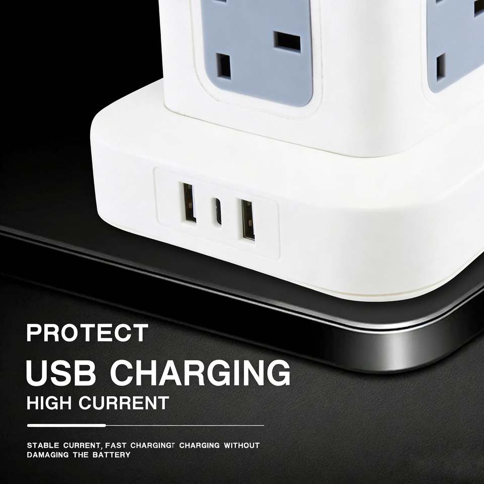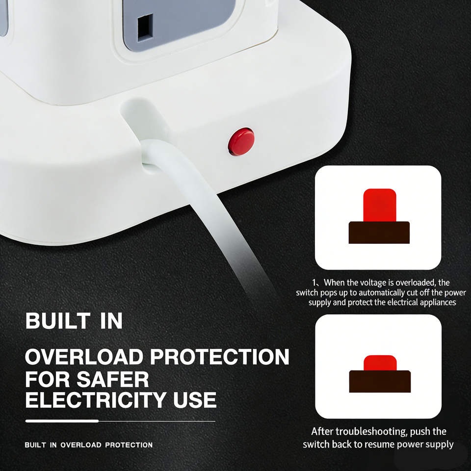สวิตช์ป้องกันไฟเกินแบบแยกอิสระ ป้องกันไฟกระชาก รุ่นใหม่ 2026 แบบตั้งโต๊ะ ใช้ได้ทั้งที่บ้านและสำนักงาน มีพอร์ต USB หลายด้าน เหมาะสำหรับปลั๊กแบบ UK