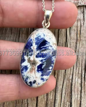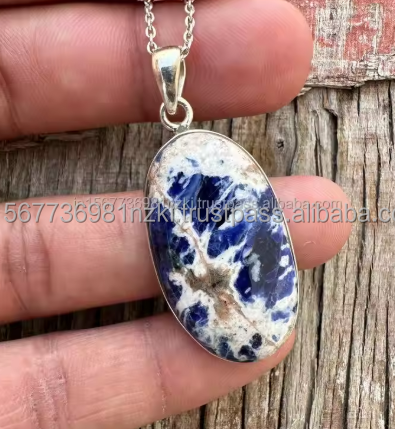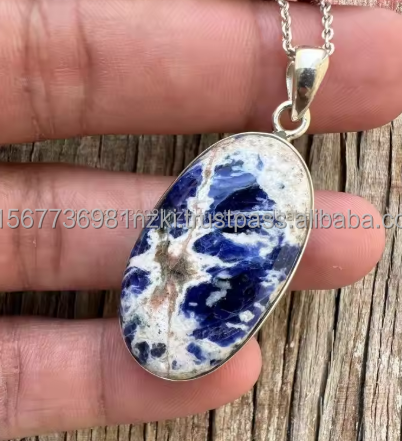 จี้เงินสเตอริ925อร์ลิงเงินจี้โซดาไลต์อัญมณีทำด้วยมือเงินอัญมณีจี้เครื่องประดับเงิน