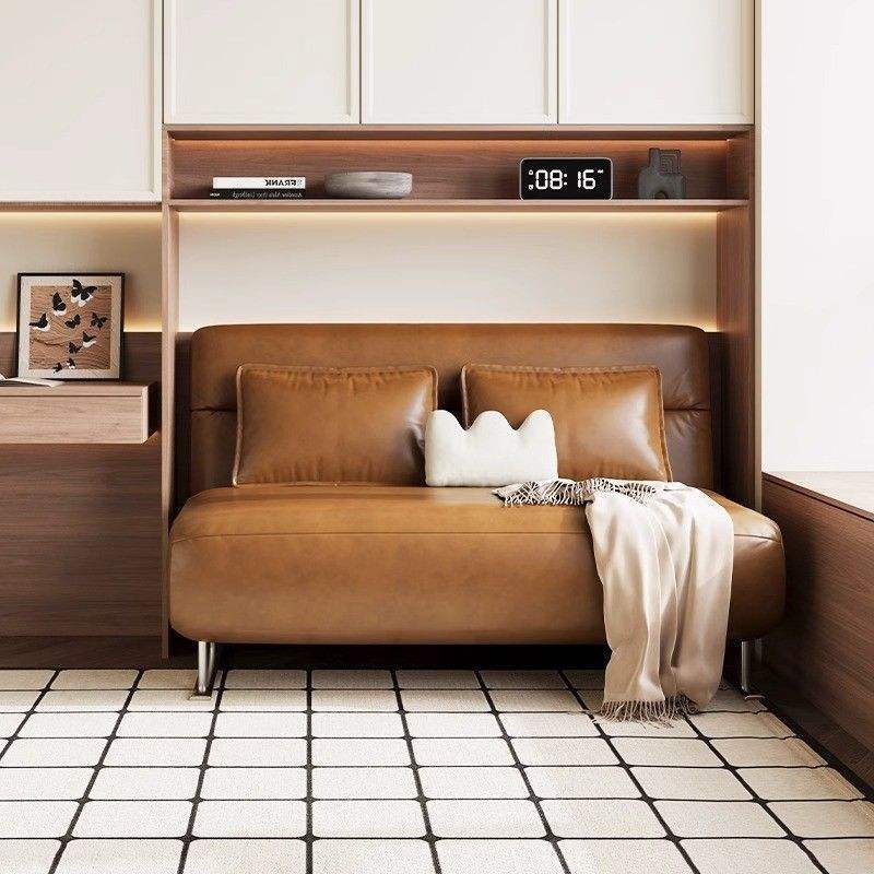 โซฟาเบดหนังเคลือบน้ำมันแบบปรับเปลี่ยนได้ สไตล์โมเดิร์นมินิมอล สำหรับอพาร์ทเมนต์ขนาดเล็ก ห้องนั่งเล่น ใช้ในสำนักงาน