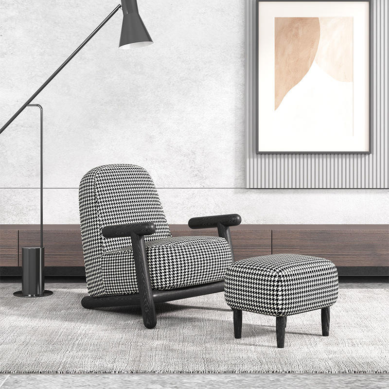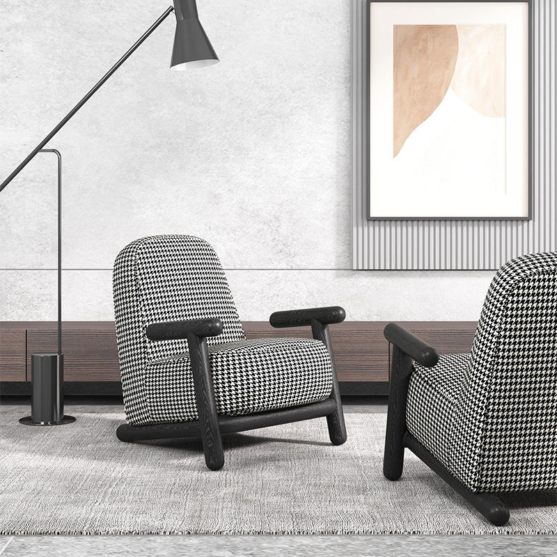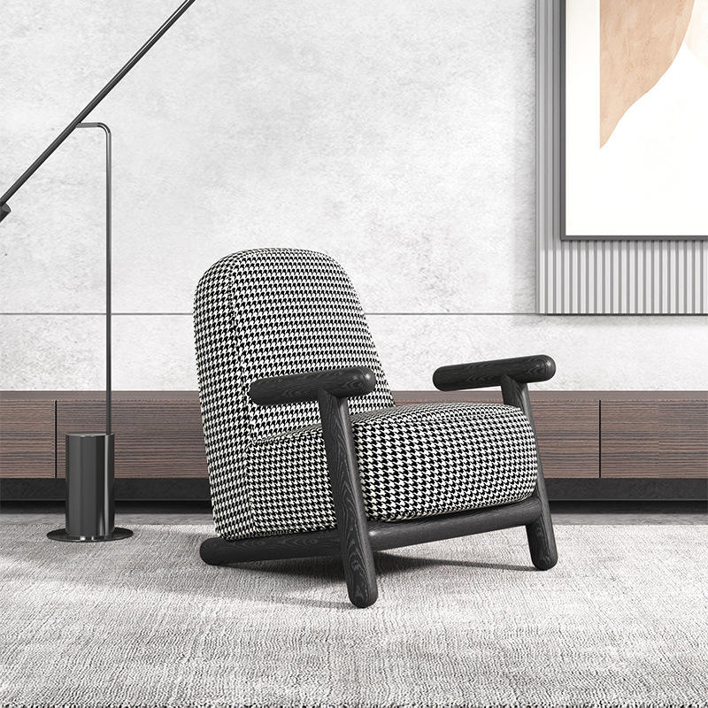 เก้าอี้โซฟาเดี่ยวสไตล์อิตาลีลายฮาวด์ทูธเบาะนั่งสบายเก้าอี้ห้องนั่งเล่นสไตล์มินิมอลทันสมัย
