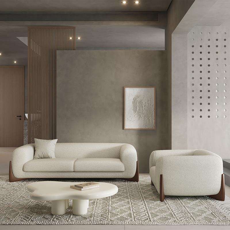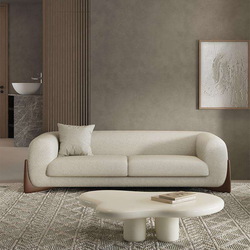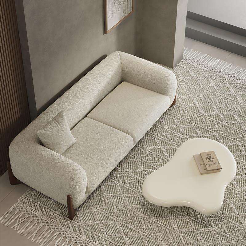 โซฟาสำหรับห้องนั่งเล่นขนาดเล็ก สีครีม สามที่นั่ง หุ้มด้วยผ้าขนแกะ สไตล์ญี่ปุ่น วาบิซาบิ ดีไซน์