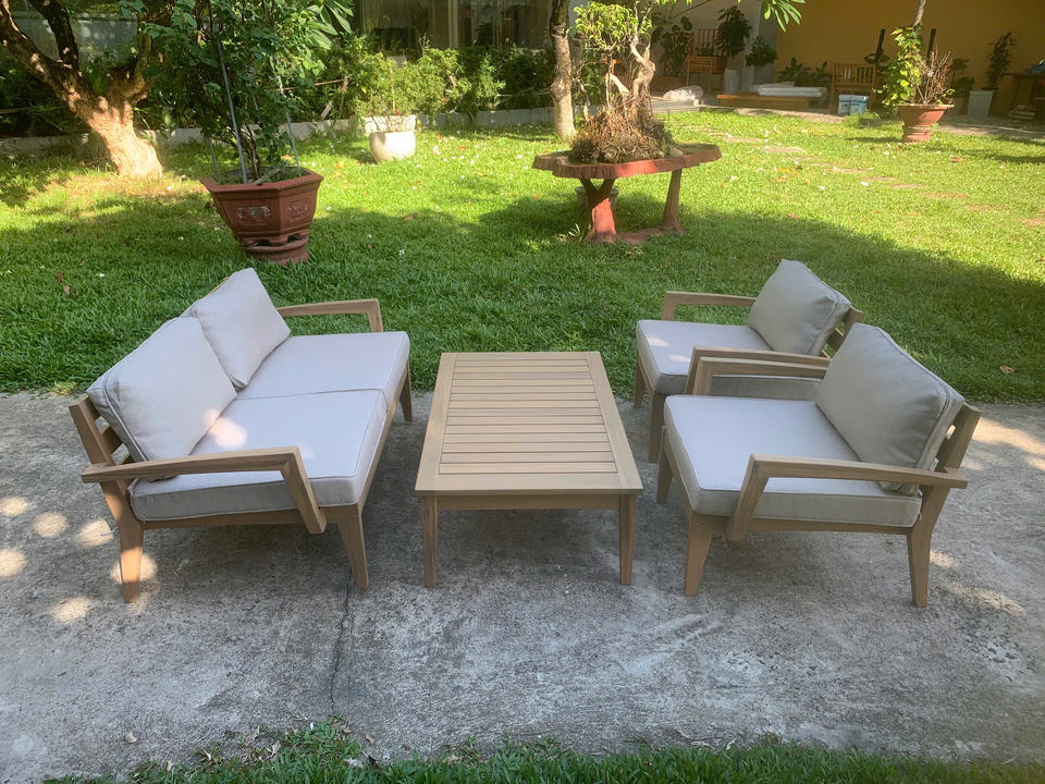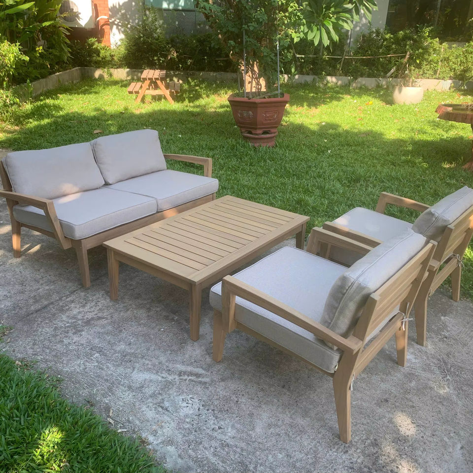 ชุดโซฟาไม้เนื้อแข็งอะคาเซียสำหรับสวนกลางแจ้ง ดีไซน์เรียบหรู ระเบียง รักษ์โลก ทนทาน น้ำหนักเบา นั่งสบาย 4 ชิ้น