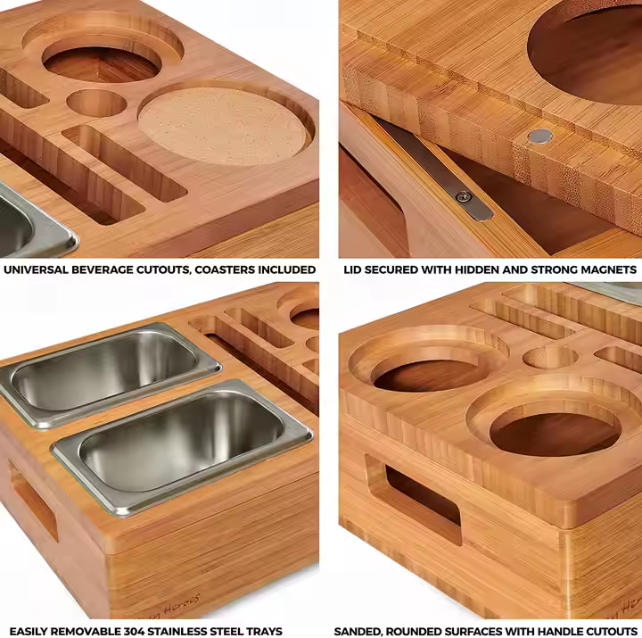 Product Name:Bamboo Couch Cup Holder with Container