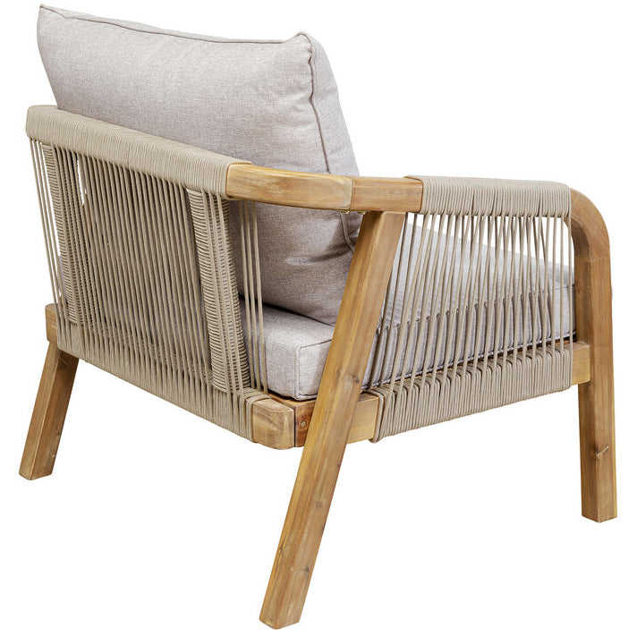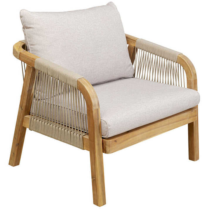 ชุดโซฟา Lorena ทำจากไม้สักแท้คุณภาพสูง พร้อมเชือกถักและเบาะสีขาว สำหรับใช้งานกลางแจ้ง