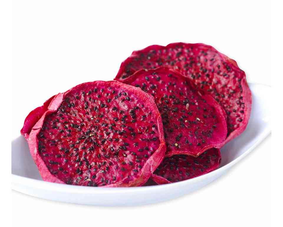ผลไม้มังกรอบแห้งแบบนิ่มและกรอบจากสดแก้วมังกรอบแห้ง