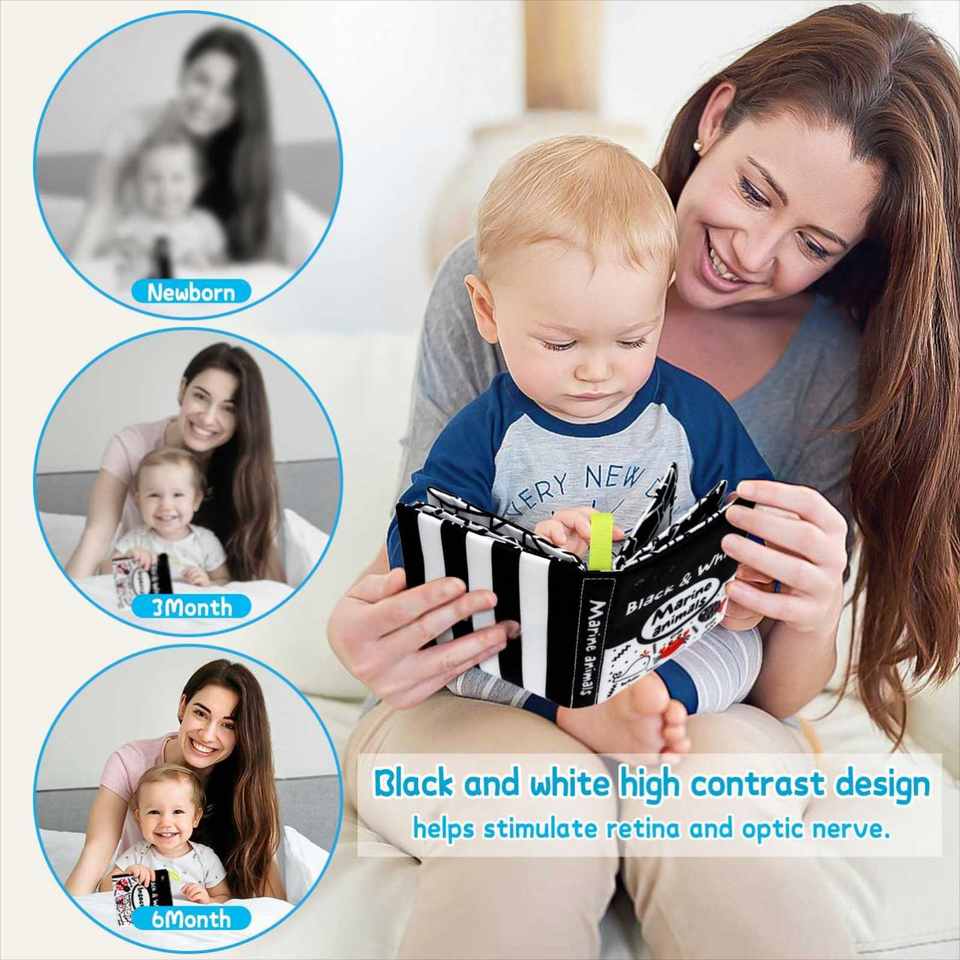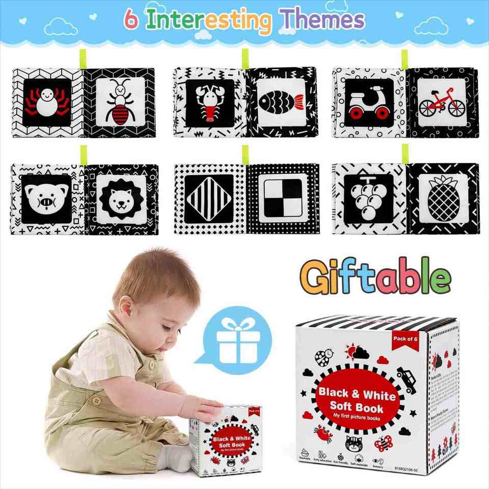 หนังสือผ้าเนื้อนุ่มสำหรับเด็กทารกและเด็กเล็ก 6 เล่ม ชุดสีขาวดำตัดกันชัด ซักได้ เคี้ยวได้ ปลอดสารพิษ สัมผัสได้ดี