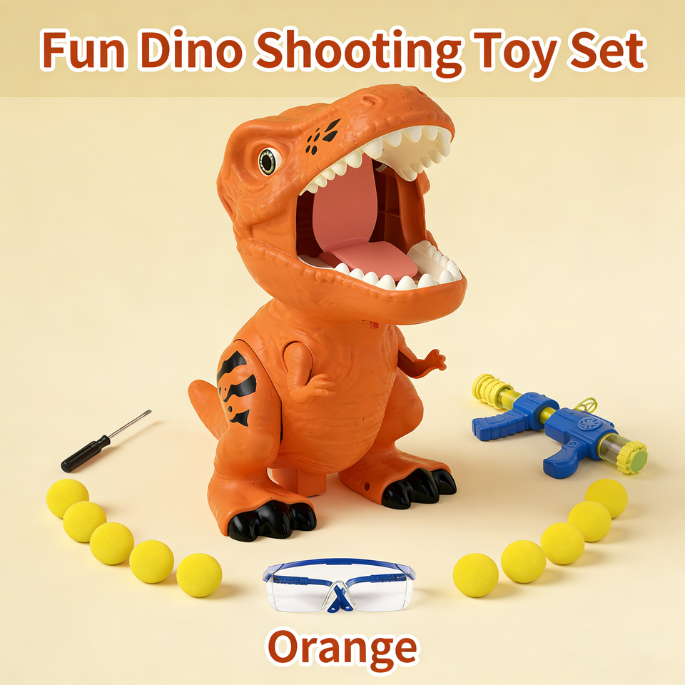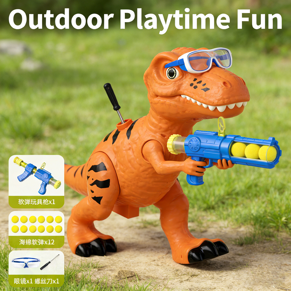 ปืนยิงลูกบอลนิ่มรูปไดโนเสาร์สำหรับเด็ก เล่นเกมยิงปืน