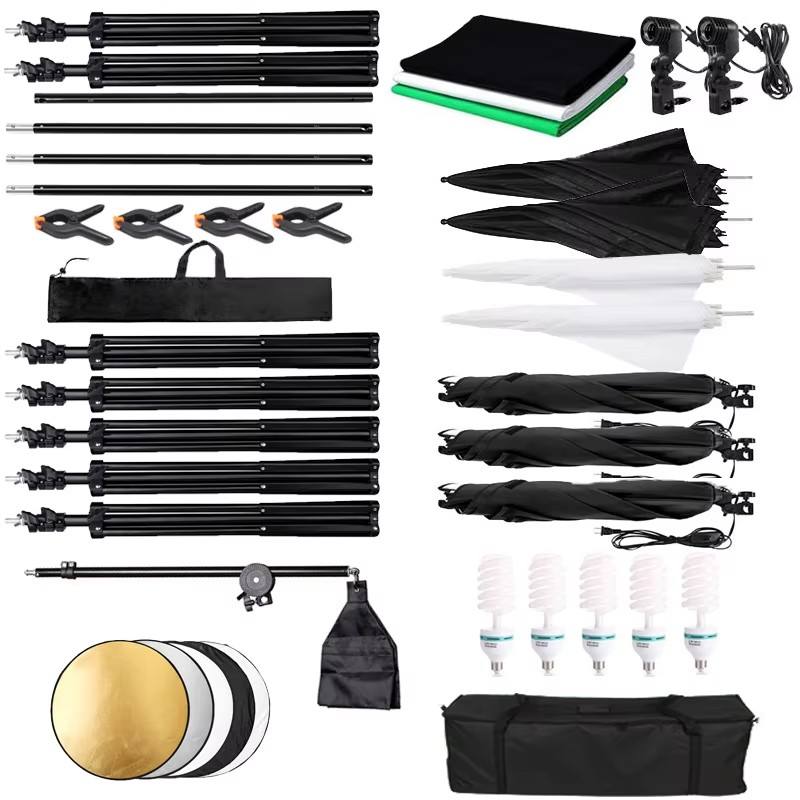 ชุดไฟสตูดิโอถ่ายภาพ วิดีโอ ไลฟ์สด พร้อมซอฟต์บ็อกซ์ ร่มสะท้อนแสง ฉากหลัง ขาตั้งกล้อง และอุปกรณ์เสริม